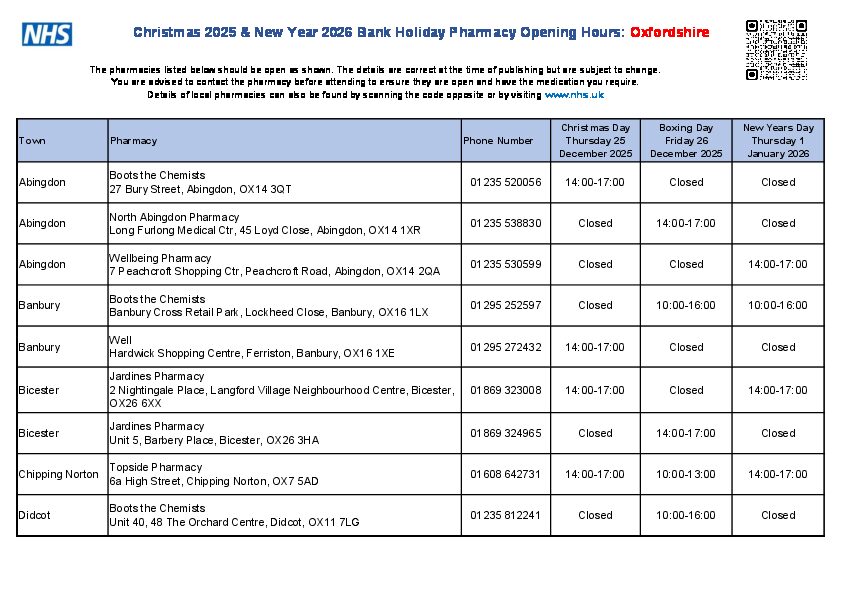 Community pharmacies open over Christmas and New Year Bank Holiday